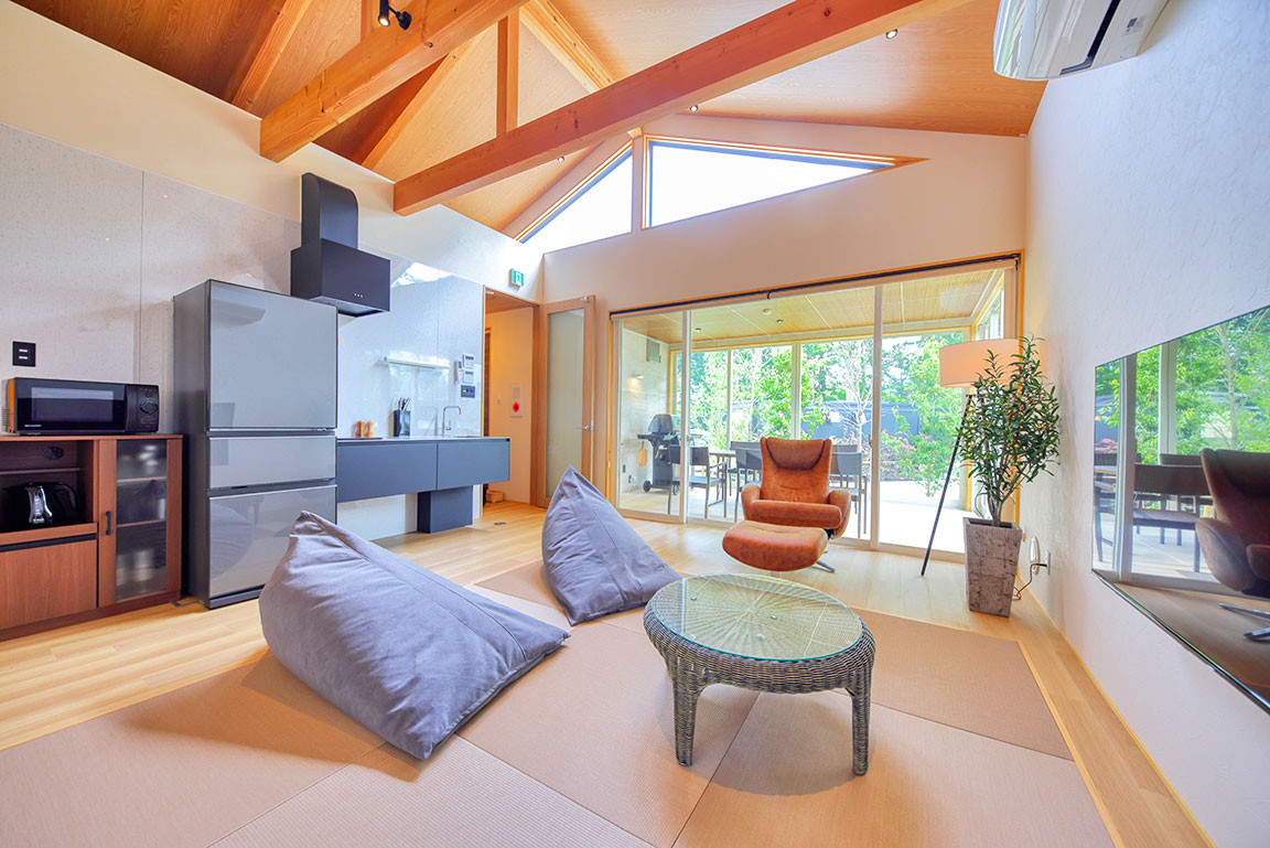 | 固有設備 | 天然温泉風呂、サウナルーム、全天候型BBQスペース、トイレ、エアコン、プライベートドッグラン |